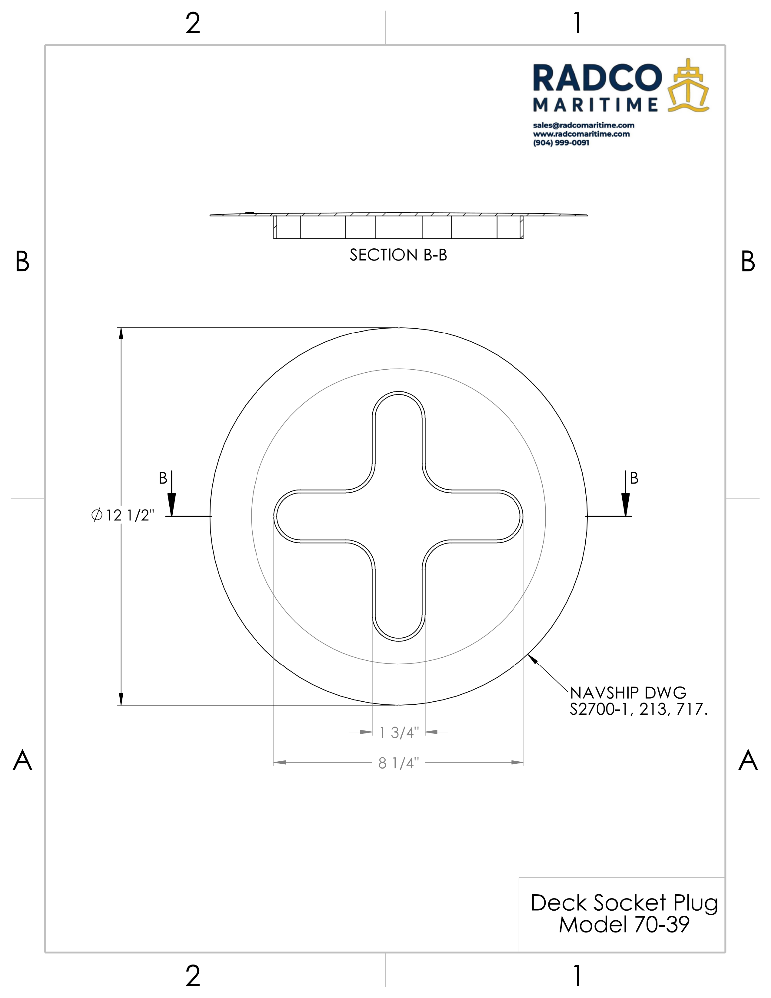 The Model 70-39 is a ruggedized external cover designed for the "Cloverleaf" lashing pots found on vehicle and working decks . It provides a full-surface seal that overlaps the fitting frame and deck-to-fitting weld to protect critical infrastructure from high-impact logistics and corrosive shipyard environments .